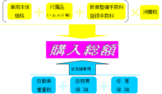 バイクを購入するには、車両本体価格の他に、上記のような費用がかかります。